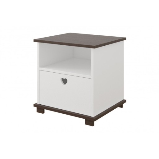 Szafka nocna posiada wycięty uchwyt w kształcie SERCA