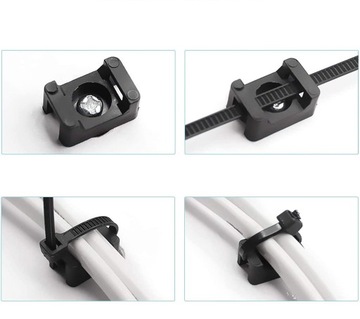 Podstawka montażowa przykręcana UV W połączeniu z opaską umożliwia szybkie i wygodne mocowanie kabli. Wygodny sposób na prowadzenie wiązek przewodów pod biurkiem czy ścianach. Odporność na warunki atmosferyczne umożliwia stosowanie w mocowaniu rurek, peszli i grubszych kabli na zewnątrz budynku.