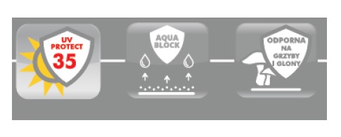Filtr UV Protect 35 zabezpiecza drewno przed promieniowaniem słonecznym do 35 razy dłużej niż produkty bez filtra. Dzięki technologii AQUA-BLOCK powłoka jest odporna na opady deszczu i wilgotność.