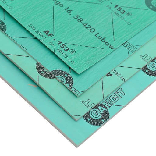 Płyta uszczelkarska GAMBIT AF-153 wykonana jest na bazie włókien naturalnych, włókien mineralnych oraz wypełniaczy powiązanych lepiszczem na bazie mieszanki kauczuków NBR, NR i SBR.