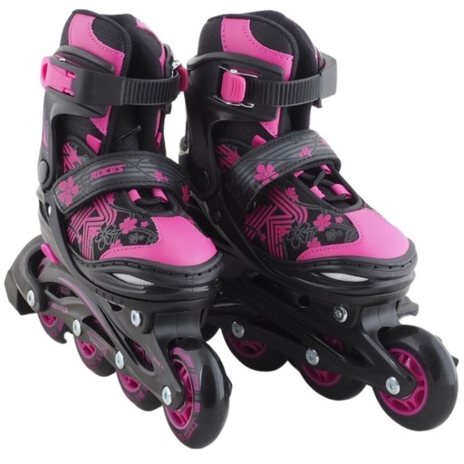 Łyżworolki Roces przeznaczone są dla dzieci i młodzieży do jazdy rekreacyjnej. Konstrukcja buta i ramy wsparta systemem Growth Compensator daje możliwość regulacji rozmiaru za pomocą jednego przycisku znajdującego się pod piętą. But zewnętrzny został wykonany z wysokiej jakości polipropylenu wzmocnionego włóknem szklanym. Technologia Easy Entry System ułatwi ściąganie i zakładanie. 3-stopniowe zapięcie stabilizuje stopę i zabezpiecza przed wypadkiem spowodowanym wypięciem. But wewnętrzny z anatomiczną wkładką zyskał system Cool Breathe, który wspomaga wentylację stóp. Kółka tzw. kauczukowe osadzono na łożyskach ABEC-3, które nie są najwolniejsze, ale nie pozwalają też rozwinąć zawrotnych prędkości.