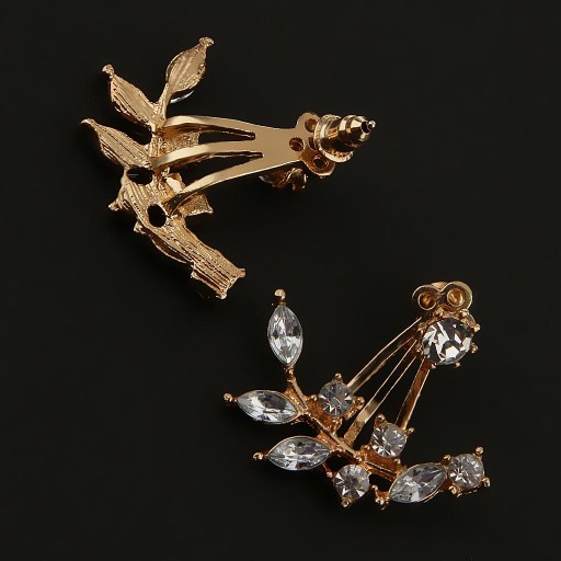 Серьги-пусеты в форме ветки Зажим с кристаллами в форме листа