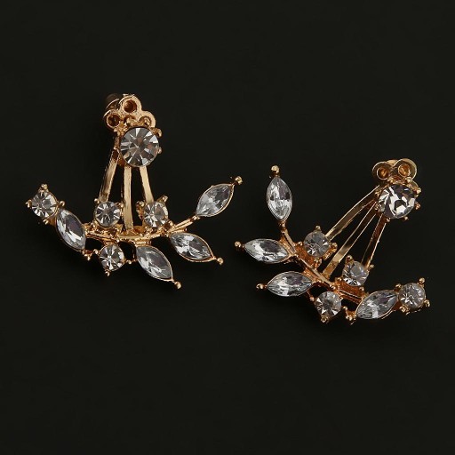 Moda Oddział Liść Kształt Kolczyki Kryształ Powrót Mankiet Ear Stud Biżuteria Złota