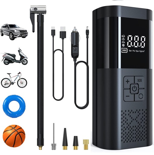 - Kompresor akumulatorowy jest mały, lekki i ergonomiczny, nadaje się jako sprzęt awaryjny do wyjścia, podróży, jazdy na rowerze, biwakowania itp.