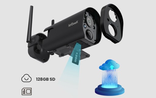 Jako kamery zewnętrzne do bezpieczeństwa w domu, ta kamera nie musi być podłączona do domowego przewodu zasilającego ani kabla sieciowego, może być używana po prostu przez zamocowanie jej na ścianie. Obsługa SD miejsce na karcie (do 128 GB, brak w zestawie) i bezpłatny 7-dniowy okres próbny przechowywania w chmurze.