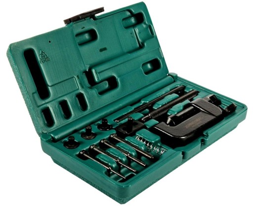 Schemat złożenia urządzenia pokazano na schemacie poniżej. Trzpień 2,2mm stosowany jest głównie do łańcuchów rozrządu. Trzpień 2,9mm do łańcuchów o rozmiarze 25 lub 35, a trzpień 3,8mm do motocyklowych łańcuchów napędowych w rozmiarach 428 – 530 i 630.