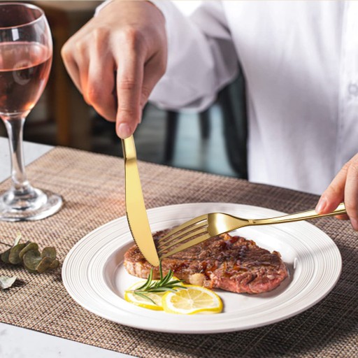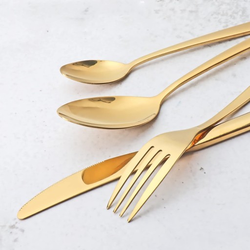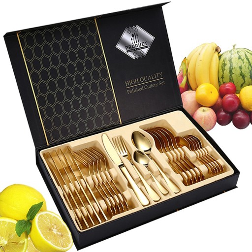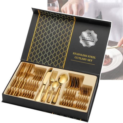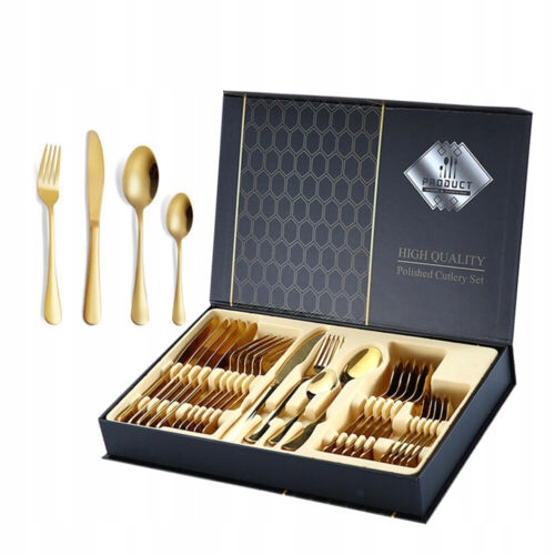 - 24-częściowy złoty zestaw sztućców składa się z 6 noży,