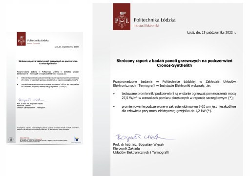 ⭐ Promienniki Cronos Heaters® jako jedyne w Polsce zostały przebadane przez naukowców, którzy potwierdzili ich skuteczność oraz brak negatywnego wpływu na zdrowie. ⭐