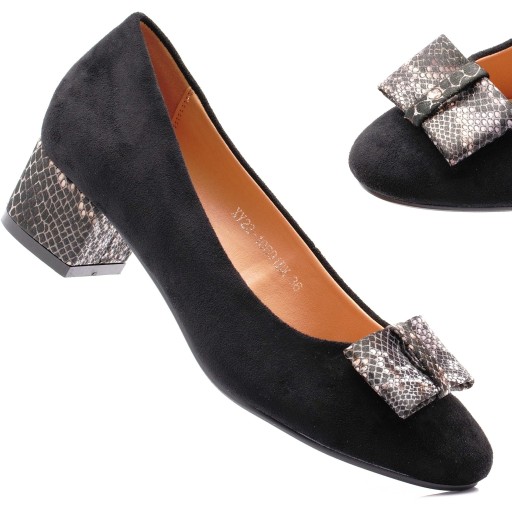 Eleganckie czółenka damskie na obcasie marki VINCEZA. Wykonane z najwyższej jakości zamszowj skóry ekologicznej. Posiadają miękką, komfortową wkładkę skórzaną oraz wygodny 4 cm słupek.