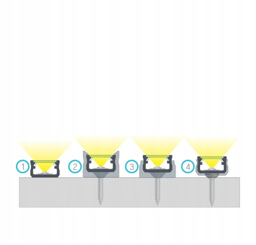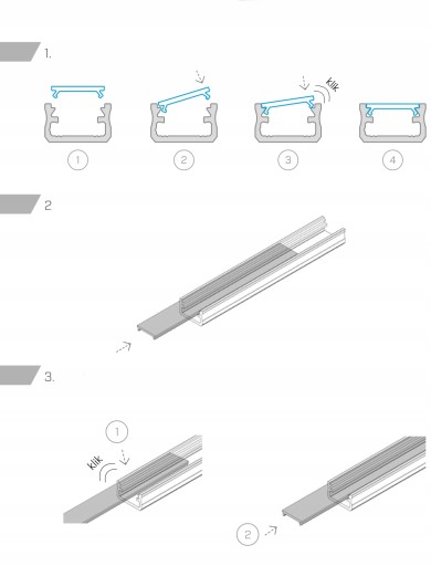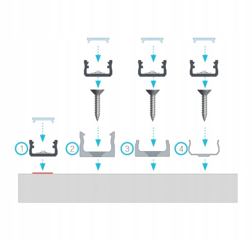 Schemat złożenia elementów systemu oświetleniowego z wykorzystaniem profilu.