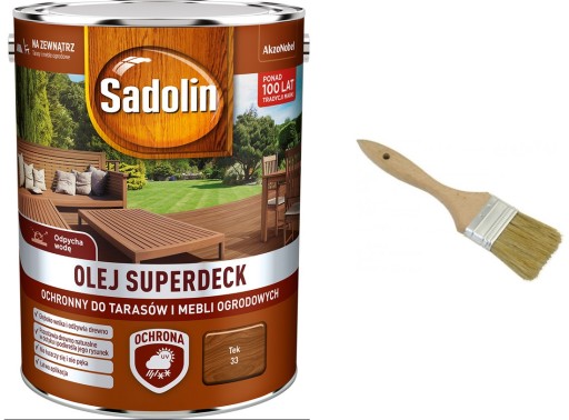 - Sadolin Olej Superdeck do mebli i tarasów to nowoczesny olej o dużej zawartości żywic przeznaczony do konserwacji i dekoracji tarasów drewnianych oraz mebli ogrodowych, a także innych powierzchni drewnianych na zewnątrz.