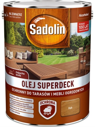 - Sadolin Olej Superdeck do mebli i tarasów to nowoczesny olej o dużej zawartości żywic przeznaczony do konserwacji i dekoracji tarasów drewnianych oraz mebli ogrodowych, a także innych powierzchni drewnianych na zewnątrz.