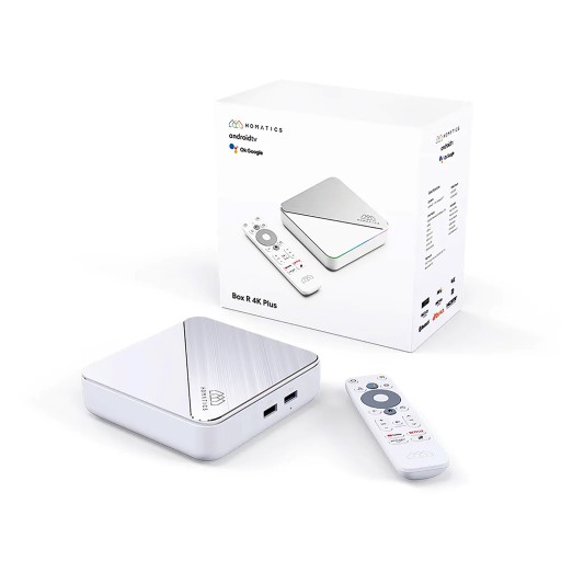 Homatics BOX R Plus to przystawka Android SMART TV 4K na systemie w wersji 11 z WiFi 2,4G / 5G, pilot Google Assistant, procesorem Cortex A55, 4 GB RAM, 32 GB pamięci wbudowanej.