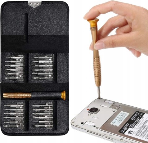 Zestaw narzędzi do naprawy telefonów jak również innego małego sprzętu codziennego użytku np. okulary, tablety, aparaty cyfrowe. zegarki itp