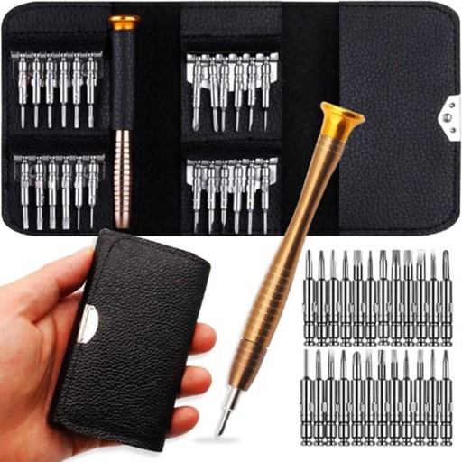 - BOGATY ZESTAW 25 ELEMENTÓW - Zestaw posiada aż 24 wymienne wkrętaki oraz 1 uchwyt bazowy. Części wykonane są z najwyższej jakości stali. Wszystko zapakowane w oryginalnym skórzanym etui