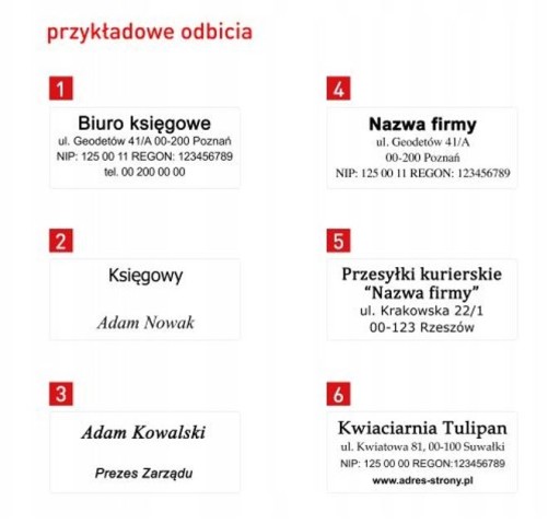 - Pieczątka posiada gwarancję na 100 000 tys. odbić.