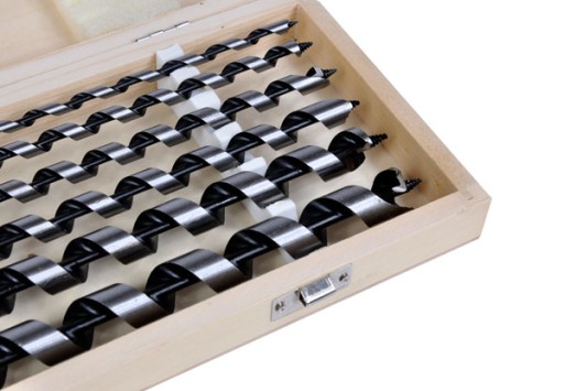 Zestaw wiertłeł do drewna marki Geko. Wiertła wykonane z najwyższej jakości stali, zapakowane w bardzo wytrzymałą, drewnianą walizkę.