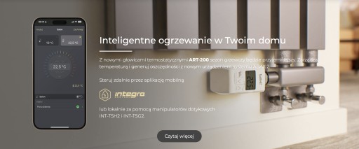 Nastawy temperatury komfortowej i ekonomicznej można zmieniać przyciskami na głowicy, za pomocą manipulatorów (np. dotykowych INT-TSI) lub z aplikacji mobilnej INTEGRA CONTROL.