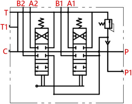 Umożliwia sterowanie dwoma siłownikami dwustronnego działania.