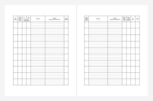 Format: A4. Liczba kartek: 192. Okładka pokryta błyszczącą folią. Dziennik do ewidencji korespondencji przychodzącej, jak i wychodzącej. Twarda oprawa, wysoka jakość wykończenia. Szyty i wzmocniony grzbiet.