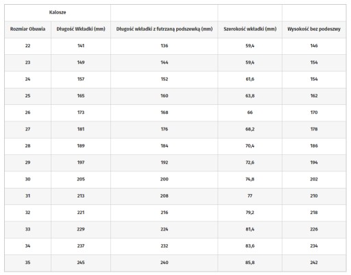 Tabela rozmiarów