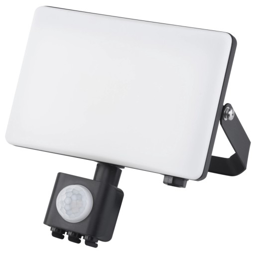 Naświetlacz LED z linii ATRIA SERIA 2 o mocy 50W z wbudowanym czujnikiem ruchu. Wyposażony w energooszczędne diody LED SMD o neutralnej barwie światła, aluminiową obudowę o klasie szczelności IP44 oraz mleczny klosz na całej powierzchni który lepiej rozprasza światło.