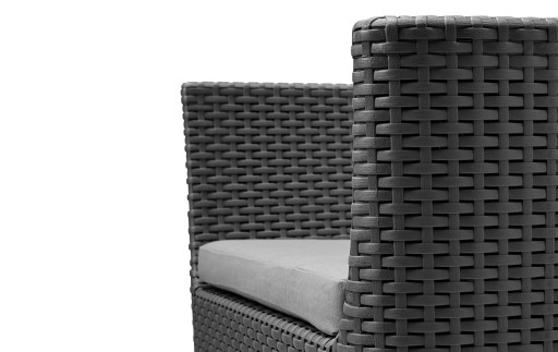 - całość wykonana została z najwyższej jakości polipropylenu w odcieniu grafitowym o strukturze naturalnego rattanu, RATTAN EFEKT!