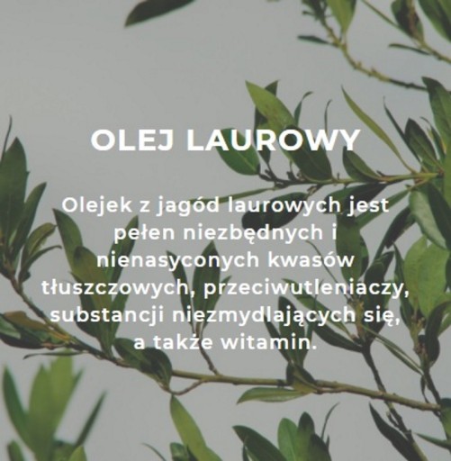 - olej laurowy działa leczniczo, kojąco i antyseptyczne