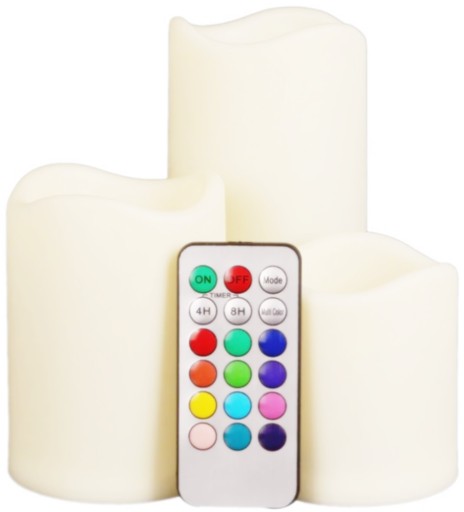 - Fabrycznie nowe 3 sztuki świeczek LED RGB komplet