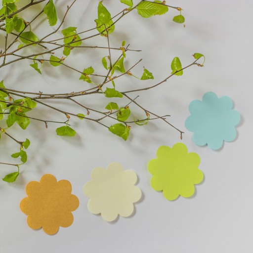 Zapas karteczek z papieru z recyklingu i papieru typu kraft w kształcie kwiatka