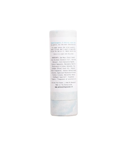 Dezodorant w sztyfcie We Love the Planet składa się w 100% z naturalnych składników. Nie zawiera syntetycznych substancji i aluminium, aby dezodorant nie był szkodliwy dla organizmu. Dzięki temu jest lepszy dla twojego ciała i planety!
