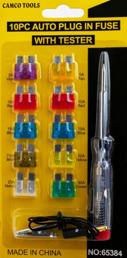 Próbnik wykonany z przeźroczystego bezbarwnego plastiku, dzięki czemu mamy dobrą widoczność diody kontrolnej. W komplecie bezpieczniki MAXI.