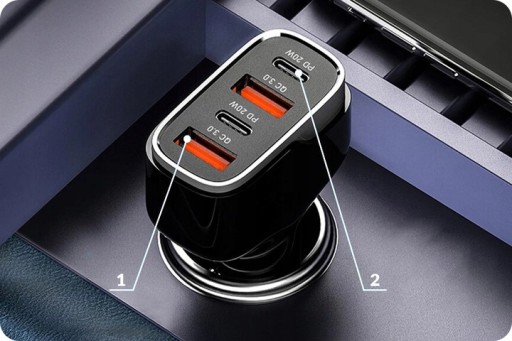 Kompaktowa, mini ładowarka samochodowa o dużej mocy • 2xUSB / 2xUSB Typ-C •