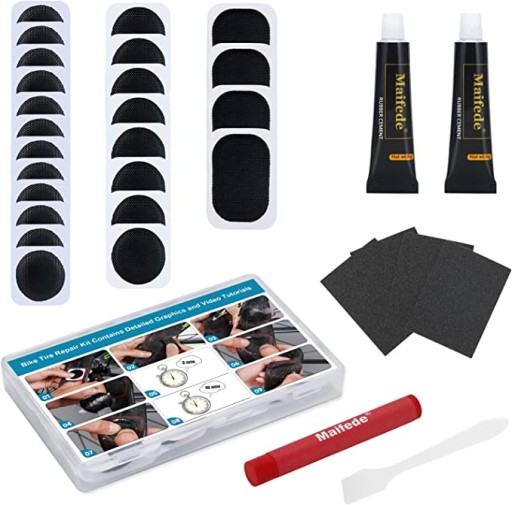Zestawy łatek do dętek rowerowych Maifede, zestaw do naprawy opon rowerowych, z zewnętrznym schowekiem, do jazdy na rowerze, motocykli, BMX, quadów i innych nadmuchiwanych gum.
