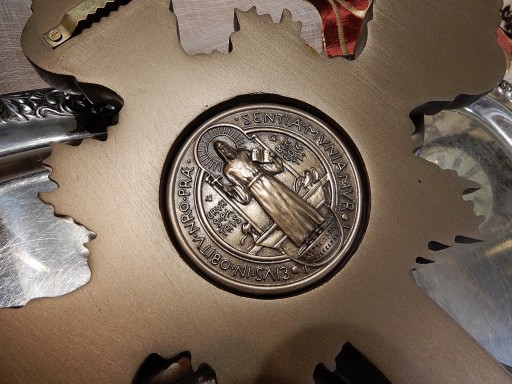 Możemy wykonać dedykację grawerowaną na płytce z laminatu grawerskiego w złotym kolorze i przytwierdzić ją na rewersie krzyża. W miejscach przedstawionych na zdjęciu