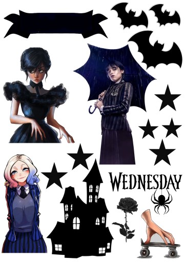 OPŁATEK NA TORT WEDNESDAY ZESTAW POSTACI +TEKST