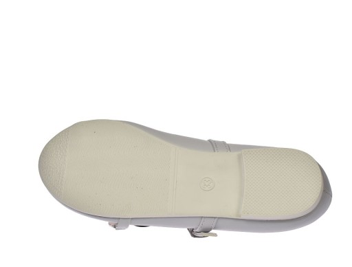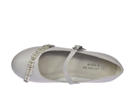Buty komunijne balerinki dziewczęce białe na obcasie z paskiem marki American Club
