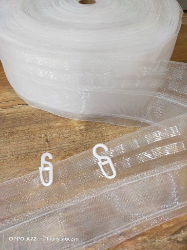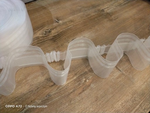 Oferujemy Państwu dodatek do firan i zasłon taśmę transparentną = żyłkową o szerokości 8cm marszczącą w tzw FALĘ .....IMITUJĄCĄ SYSTEM WAVE