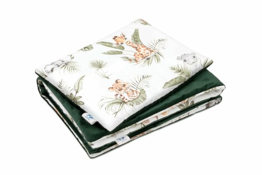 Zestaw poduszki z kocykiem doskonale sprawdzi się podczas drzemek, spaceru, jako mata do zabawy czy prezent na baby shower. Dwustronny kocyk z kolekcji GARDEN MINT z wypełnieniem zwiększy komfort termiczny w chłodniejsze dni.