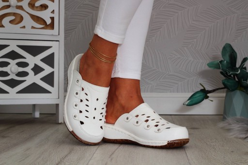 HIT klapki damskie na niskiej koturnie w kolorze białym, lekkie i wygodne.