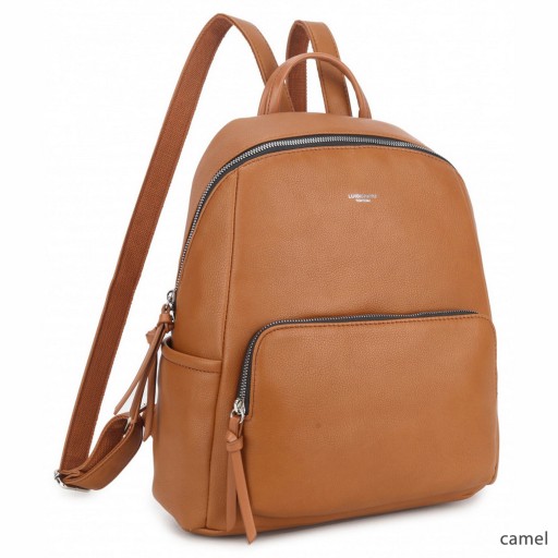 Elegancki i stylowy plecak damski marki LUIGISANTO w kolorze CAMEL. Wykonany bardzo starannie z najwyższej jakości skóry ekologicznej. Plecak posiada zasuwaną i praktyczną kieszeń na przodzie. Komora główna, wykończona podszewką, zawiera dwie mniejsze kieszonki oraz usztywnione dno. Na rewersie plecak posiada płaską kieszeń. Suwaki plecaka ozdobione są skórzanymi chwostami. Wygodę noszenia zapewniają szelki z możliwością regulacji oraz górny uchwyt. Plecak mieści miękki format A4. Jest modny i praktyczny.