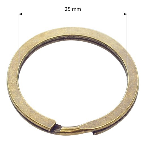 Kółka sprężyste płaskie stalowe o średnicy wewnętrznej ø 25 mm, wykonane z drutu stalowego ø 2,0 mm. Produkt niklowany w kolorze starego złota.