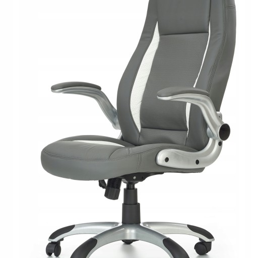 Nowoczesny, wygodny fotel biurowy, obrotowy Saturn firmy Halmar. W całości tapicerowany eco skórą i eco skórą perforowaną w miejscu kontaktu z ciałem. Łatwy w utrzymaniu czystości. Wygodne profilowane oparcie jak i obszerne miękkie siedzisko zapewnią wysoki komfort użytkowania. Składane podłokietniki (można podnieść do góry) z miękkimi poduszeczkami, pomogą w odnalezieniu idealnej pozycji do pracy czy chwili odpoczynku. Podstawa jezdna wykonana z mocnego tworzywa.