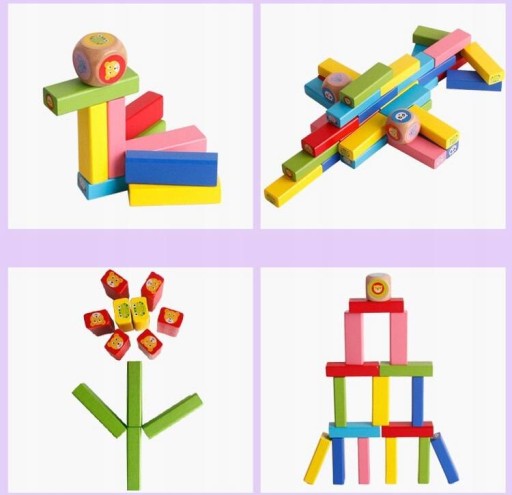 - umieszczaj klocki na górze, tak aby wieża się nie zawaliła.