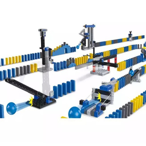 Domino Blocks- to super zabawa dla Twoich dzieci! Przewróć jeden i obserwuj efekt łańcucha kostek domina przewracających się jak wyścig. Zobacz, czyj rząd domina kończy się najszybciej. Dzieci mogą również składać go w różne rodzaje modeli zgodnie z ich wyobraźnią.Dodatkowe przeszkody i wyrzutnie zapewnią wspaniałą zabawę, w której nigdy nie wiadomo kto zwycięży i jak zabawa się skończy.