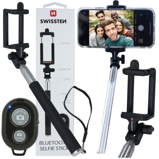 - Teleskopowy selfie stick Swissten z możliwością przedłużenia do 97 cm