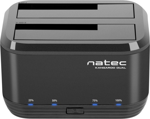 Dzięki dwóm kieszeniom Natec Kangaroo Dual umożliwia również klonowanie dysków bez konieczności podłączania stacji do komputera.Stan transferu danych wskazują diody LED umieszczone na urządzeniu