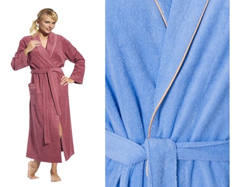 Doskonałej jakości szlafrok damski w dużych rozmiarach i standardowych wykonany dzianiny frotte jednostronnie pętelkowej