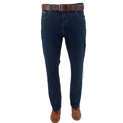 - Nie gniotące się, klasyczna struktura jeansu- kolor NAVY / GRANAT
