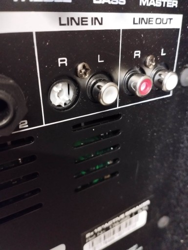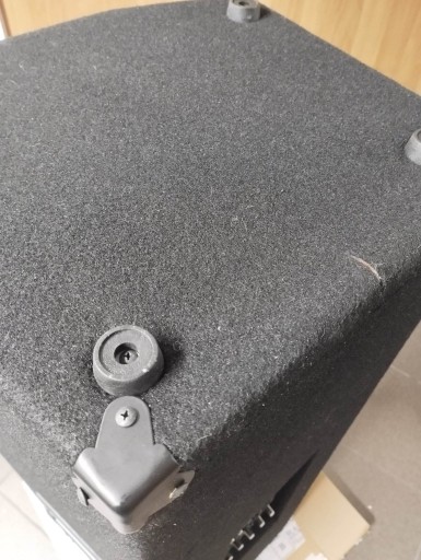 Uwaga! Kolumna posiada wyrwaną część jednego gniazda RCA (można podłączyć pod OUT gniazda są połączone) w transporcie została uszkodzona obudowa od dołu, jest luźna płyta i dwie nóżki wduszone w nią, pokazują to ostatnie zdjęcia, jest w pełni sprawna.
